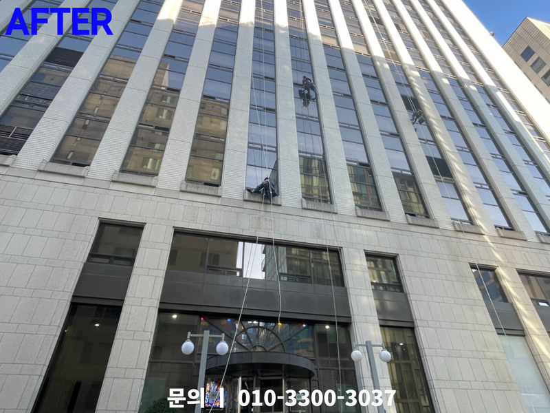 닦아 빌딩 유리창청소를 진행해줬습니다.