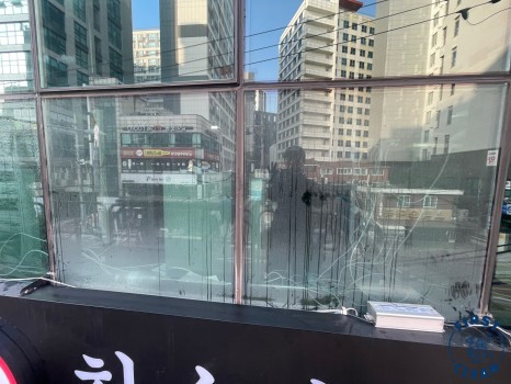 이에 유리창청소 당일에 매장 오픈을 앞두어