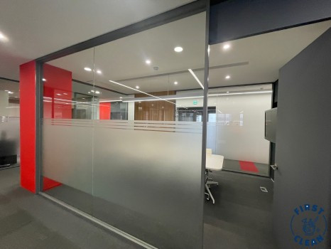 전자회사 사옥으로, 사무실 파티션유리청소를