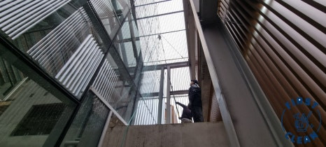 이에 이번 현장은 평범한 유리창청소 작업과는 다소 차이가 있던 곳인데 첫째로 위치상 스카이차량 이용이 불가능한 현장이었습니다.